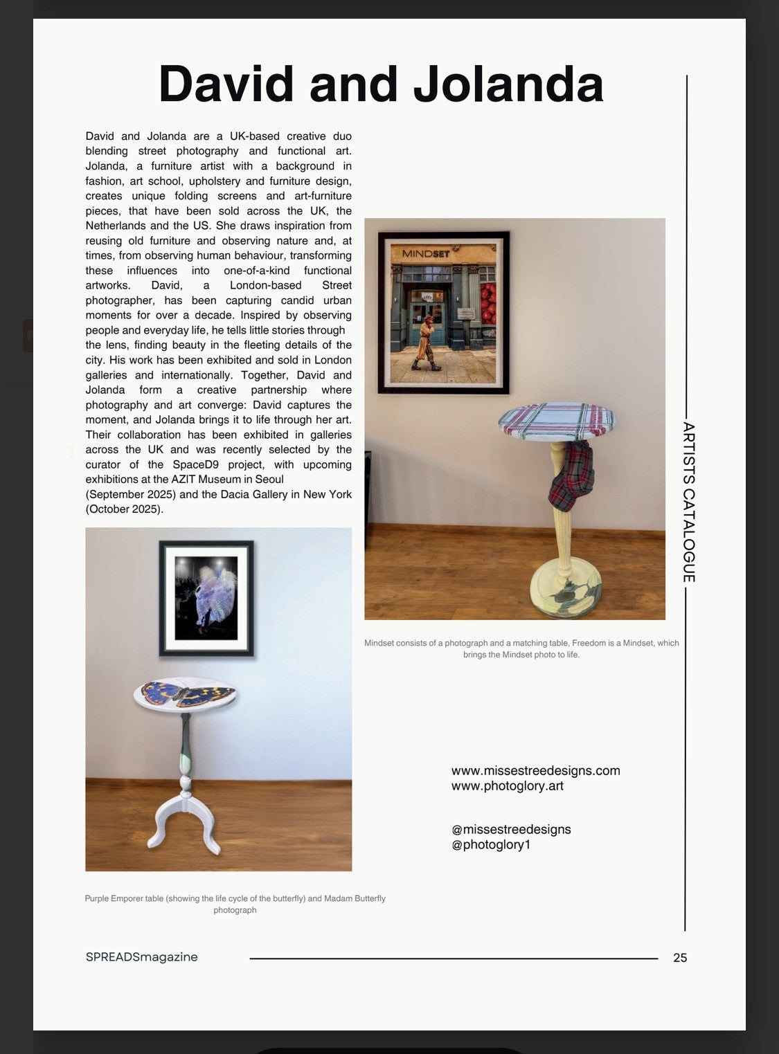 I have been featured in the Spreads Magazine, alongside David with our collaboration project