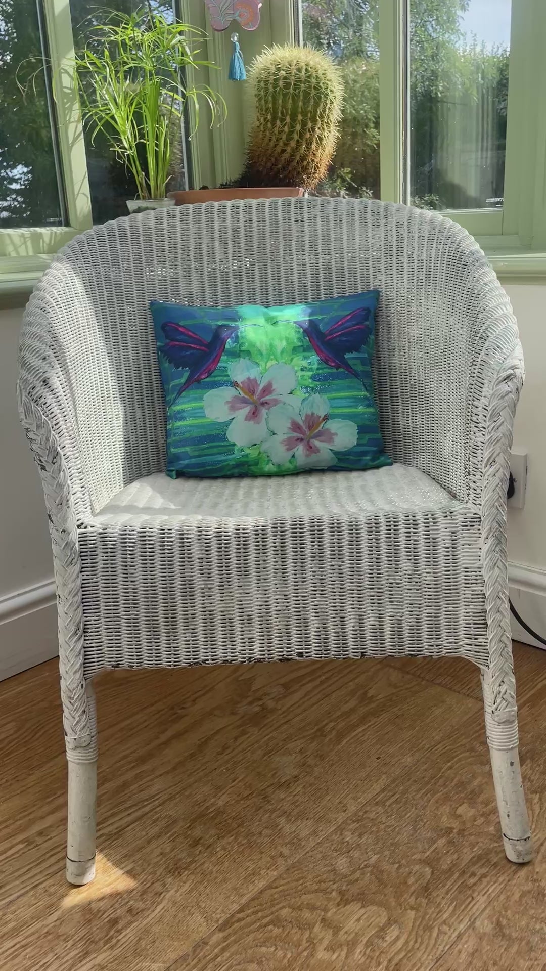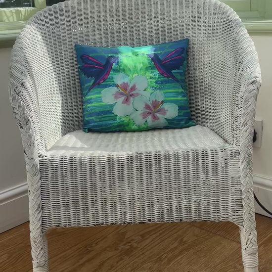 Sofa Cushion: Reversible Hummingbird-Hibiscus cushion